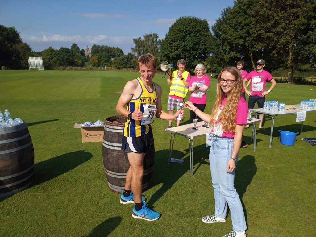 Severn Athletic Club’s captain James Rose won his local race the Dymock Half Marathon in 1 hour 18 mins 49 seconds for the eighth time. He had to work hard for victory after RAF runner Matthew Allen set off fast outpacing the field. Beginning to weaken at 11 miles, Rose set off in pursuit. Only in the final 500 Metres did he catch Allen with Rose’s superior finishing speed prevailing winning by 10 secs. He was delighted to lead Severn AC to a hat trick of team victories with recent signings John Chapman & Dan Nurse..