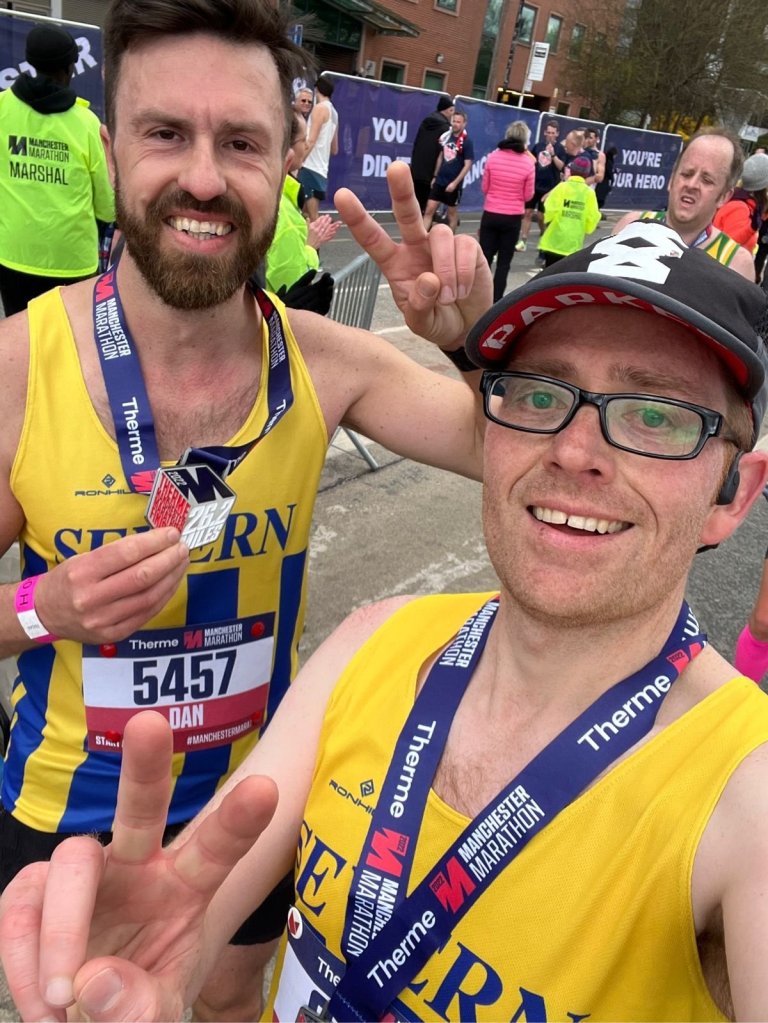 Manchester Marathon: 1364 Dan Nurse V/40 3:01:09 PB & 1953 James Smith V/40 PB 3:11:16. 14168 ran.